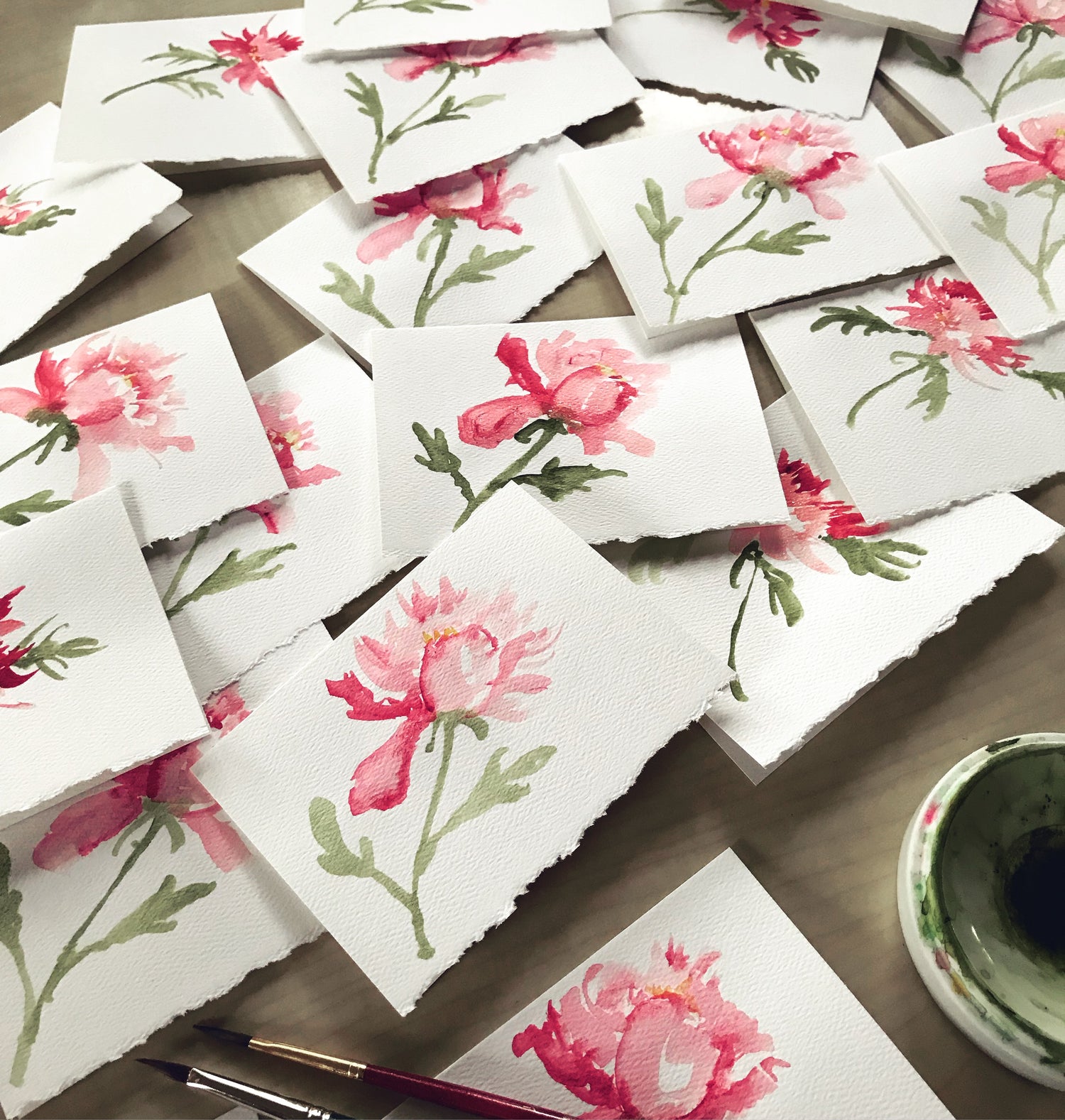 I hand paint each card with delicate watercolor detailing and hand-lettered calligraphy, offering a beautiful way to cherish the thoughtful moments that mean the most.